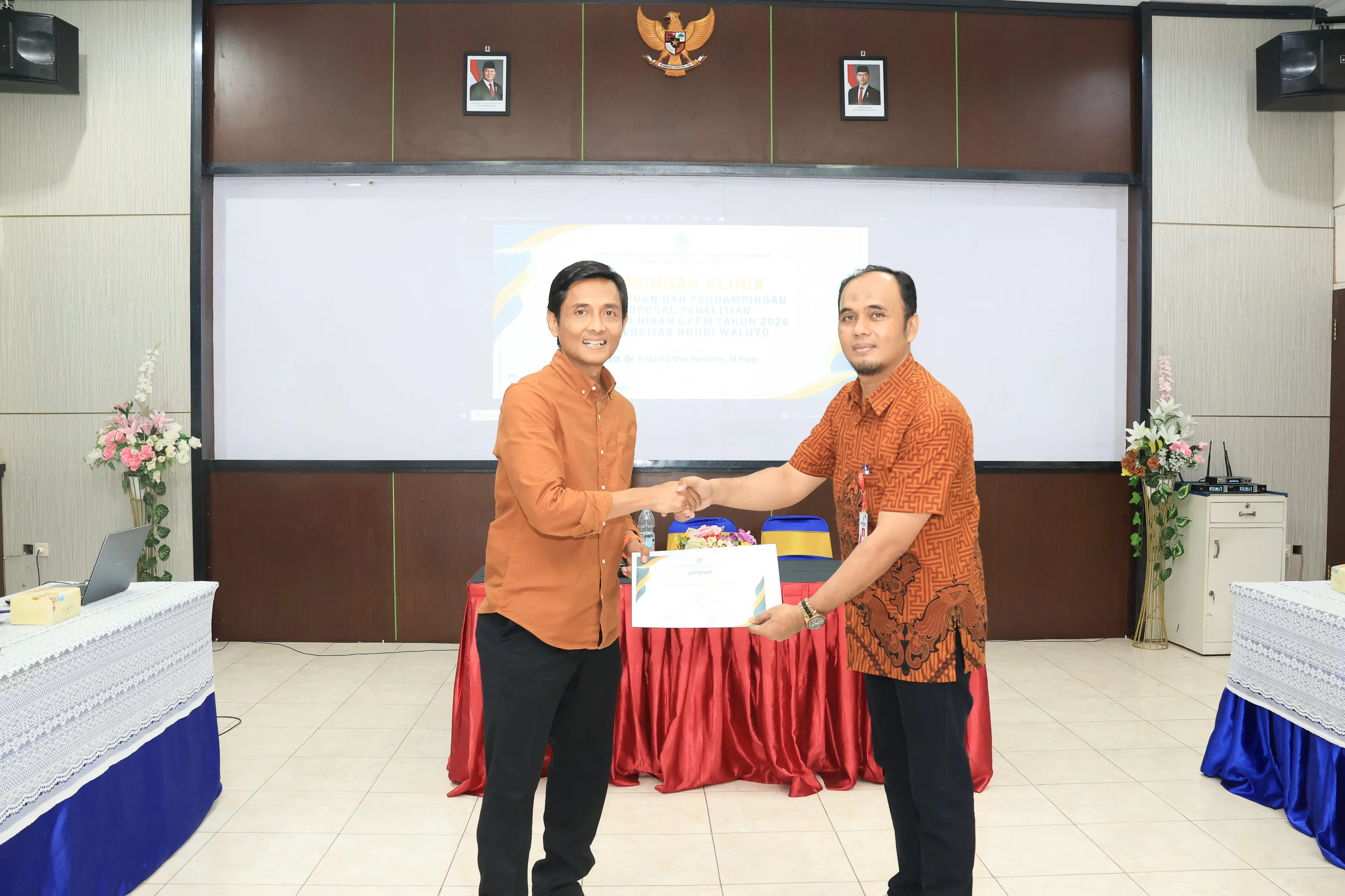 Ungaran, 14 Oktober 2025 - Perteguh Komitmen, Lembaga Penelitian dan Pengabdian kepada Masyarakat (LPPM) Universitas Ngudi Waluyo kembali menggelar Bimbingan Klinik Penyusunan Dan Pendampingan Proposal Penelitian Program Hibah DPPM Tahun 2026. Kegiatan ini merupakan pembekalan bagi para dosen dengan panduan teknis dalam menyusun proposal pengabdian masyarakat yang kompetitif. Digelar di Ruang E.1.1. Gedung H.M. Iskak Soepardi UNW pada hari Selasa (14/10) dan menghadirkan Prof. Dr. Kristoko Dwi Hartomo. M.Kom., sebagai narasumber utama.